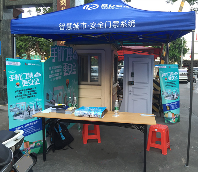 “一卡授權、暢行無憂!”——為期四天的蔡二新村CA-SIM門禁系統宣傳推廣活動於2015年6月7日在蔡二新村牌坊圓滿結束。 本次推廣活動旨在讓更多的村民和租戶通過現場體驗、互動諮詢,認識和加深瞭解我司CA-SIM門禁系統,更直觀地感受CA-SIM門禁系統的功能和特點。 本次活動圓滿結束,為後續CA-SIM社區便民惠民服務和手機CA-SIM的推廣奠定良好基礎。 新穎的宣傳標語、醒目的道具門,配上富有穿越時空感的背景,吸引了不少租戶和村民前來體驗和諮詢。我司現場同事逐一耐心地解答大家的疑問,消除他們的顧慮。通過親身體驗,大家對CA-SIM門禁系統的功能、安裝和使用方法等產生濃厚興趣,一些之前未能安裝上CA-SIM門禁系統的房東表示希望能早日安裝,以提升自家和租戶安全。 為配合番禺區打造智慧城鎮生活圈,我司將繼續推進社區APP便民惠民服務和手機CA-SIM,使用戶在感受系統所帶來安全體驗的同時更能體會到實名認證的CA-SIM帶來的智慧便捷生活。