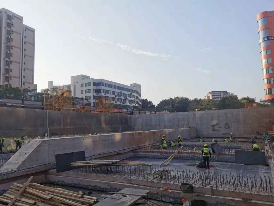 △ 鹤南站混凝土支模施工 土建工程累计完成30%。8座车站中,1座主体结构封顶,5座进行土建施工,剩余2座进行前期准备;8个区间中,2个已贯通,3个进行土建施工,其余3个进行前期准备。 十八号线后通段 (冼村-广州东站)